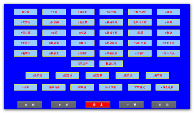 設備在手動狀態下可執行單個執行部件的動作,此功能可在調試過程中或生產過程中出現意外情況時使用。