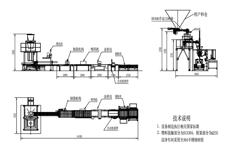備注:收口后,物料上部至袋口的間隙應大于200mm(視具體物料而定)。